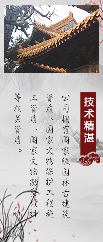 堅(jiān)持質(zhì)量為先,信譽(yù)為重,管理為本,服務(wù)為誠的理念。本著對社會(huì)、對建設(shè)單位負(fù)責(zé)的原則,將工程質(zhì)量、安全生產(chǎn)放在工作的重要位置。我們堅(jiān)持發(fā)展古建藝術(shù),弘揚(yáng)民族文化,作為企業(yè)的經(jīng)營管理理念。曲阜古建筑義德古建始終秉承“科學(xué)管理,創(chuàng)精品工程,打造古建筑行業(yè)標(biāo)準(zhǔn)”的方針,追求更高質(zhì)量,為文物保護(hù)、傳統(tǒng)建筑事業(yè)做出貢獻(xiàn)。